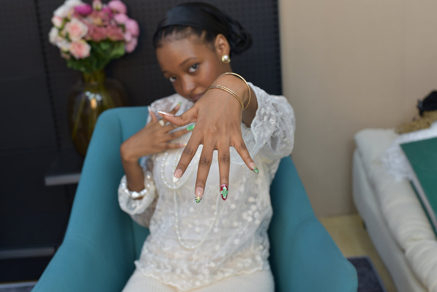 I wore the 'Pearlescent Promise' set for my wedding day and they were absolutely perfect. The delicate details were even more beautiful in person, and they held up through tears, champagne, and dancing. So many guests asked which salon I went to!